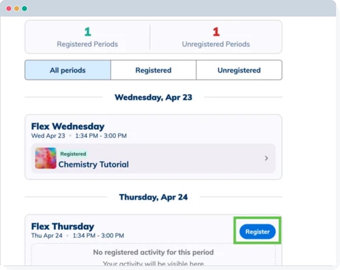 Teachers do not receive a notification when a student self-registers for a Flex activity or Flex period.